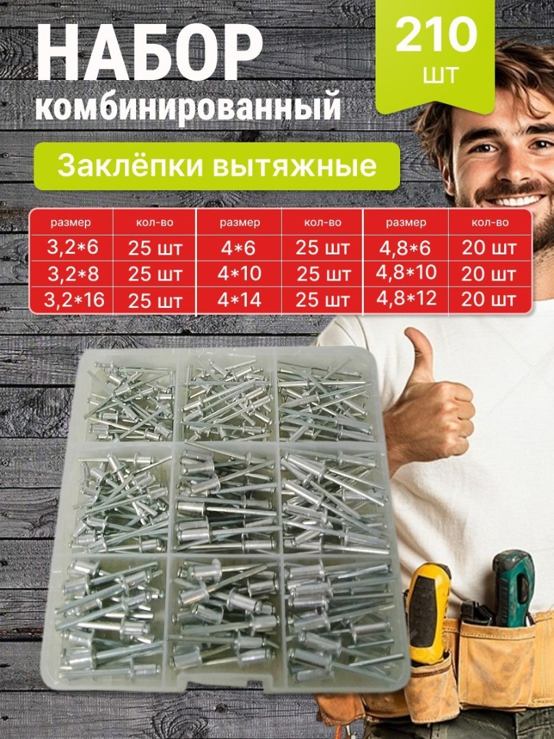 Набор комбинированный "Заклепки вытяжные" - 210 шт